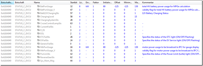 I think it best to also get a few CAN dumps: While car is parked, idle, asleep While car is parked, but awake While car is driving These should be in CRTD format. They will allow us to double-check the actual CAN bus traffic to ensure it matches what is shown in the spreadsheet. Regards, Mark.
