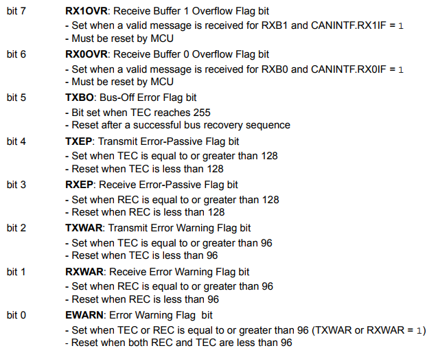 // MERRF 0x80 = message tx/rx error // ERRIF 0x20 = overflow / error state change