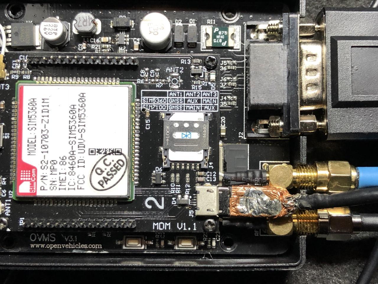 The simcom on one of my modules wedged today and had some time to poke at it. When I turn on simcom debugging I see "AT" commands once a second: D (1199981) simcom: tx scmd ch=0 len=4 : AT D (1200981) simcom: tx scmd ch=0 len=4 : AT but no responses. I wanted to see if I could talk to the simcom via the usb connector on the modem card so I sacrificed a micro usb cable and hacked the molded end off so I could plug it in without detaching the modem board from the main board (see attached). Next I spent a few minutes with a spare module looking for a windows 10 driver. The sim5360 (rar) archive from techship.com didn't work but the windows 8 zip file from here did: https://github.com/botletics/SIM7000-LTE-Shield/tree/master/SIM7000%20Docume... I ended up with four com ports (at, nema, diagnostic, and audio) and was able to talk to the spare modem. Then I went out to plug into the simcom in the car. The first thing I noticed was that the blue led on the modem board is not lit and (as expected) I got nothing from the at com port. For completeness I tried rebooting the module but it help. I now believe wedging the simcom involves running the car for a short amount of time. In this particular case I moved the car out of the garage to make room for some work on my other car. An hour later I moved it back. The run time was 1-2 minutes each time. A bit later when I tested Mark's new ios app I noticed that the car was not reporting a location. I looked at the simcom docs a bit and it's too bad the simcom RESET pin isn't connected to a pio pin. It'll be a couple of days before I'll need the gps to work in case there are ideas of what can be done via software to wake up the simcom. I might trying add a simcom command to set PWKEY to an arbitrary state to see if holding it low for more than one second does anything. Craig