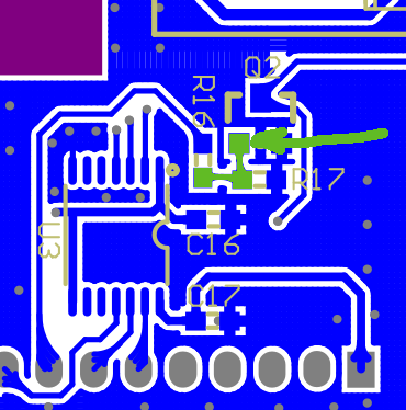I think something in the range 130-150K should work. That should put the base to ~0.5-0.6V for low and to ~1.0-1.2V for high. That's either not fully switched off on low or not fully saturated on high, but should be sufficient for the modem. Schematic: PCB (down side): Regards, Michael -- Michael Balzer * Helkenberger Weg 9 * D-58256 Ennepetal Fon 02333 / 833 5735 * Handy 0176 / 206 989 26