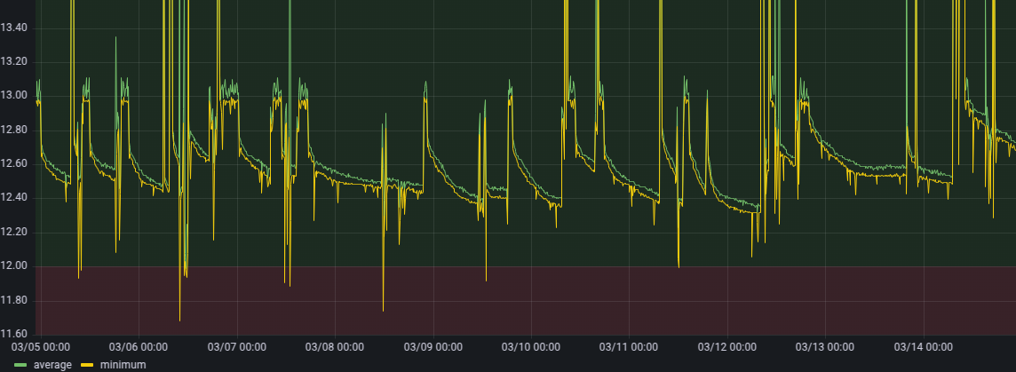 You should also have a look at the general 12V level behaviour, e.g. using the 12V chart plugin or creating a chart from the MQTT metric.