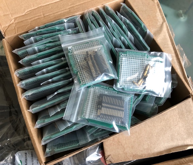 I have them with me in Hong Kong. Arrived hot off the PCB press just last night. Each set contains: * 3x PCBs * 12x screws * 12x support pillars * 6x 14pin female single header * 6x 14pin make single header In simple plastic bags, with nothing soldered. Price is US$9.50 each set. Shipping is US$5 (for up to 3 sets). For the moment, I am just going to ship these from Hong Kong myself. Quantity is too small to bother distributors with them. If you want some, PayPal me (mark@webb-johnson.net) and I will send direct. I made 40 sets, but easy to make more if we need them. Regards, Mark