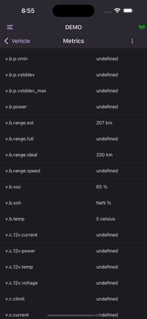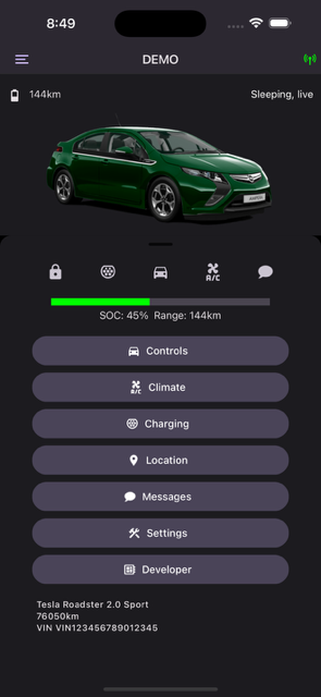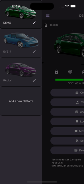 For a while now (something like a decade), I’ve had a dream of a single unified OVMS App. A rough list of some of the pain points I have wanted to solve includes: Free and open source - both the project and the tools. One app running on the web, as well as mobile iOS, Android, etc. Multi-platform - taking the virtual vehicle module concept from our module firmware out into the App, and allowing vehicles to be added to the app using ‘platforms' (such as OVMS v2 API, OVMS v3 MQTT, Tesla Fleet Api, and possibly others like Smartcar, Tessie, etc). Solve the vehicle image problem once and for all. Customizable screens / dashboards. Allow for reliable custom server push notifications (ie; not just api.openvehicles.com <http://api.openvehicles.com/> and dexter’s). Support for native extensions (watch apps, etc). Having tried more than half a dozen cross platform development environments, a year ago we started using the Expo environment (based on react native) at my day job, and that was a game changer. It finally made React Native usable, with real-time prototyping, cloud builds, simplified distribution, push notifications, cloud (not App Store) updates, and much more. Still painful, but usable. However, the real impetus was pursuading my son to help out as a summer internship. Expo is pretty cool. You can develop locally, then build iOS and Android apps in the cloud (no need for windows or Mac locally). It has it's own push notification system using it's own tokens, and so long as you know the token any server can push notifications out to the apps (even under iOS) - that can be locked down with a secret or left open. It is still cumbersome (Javascript / typescript with a heavy load of libraries), but imho the best that there is out there for stuff like this. For projects like ours it is effectively free, and while commercial it is open source and nothing would stop us from moving to pure react native at a later date (should Expo start behaving badly). We’ve now built a prototype of this App, and I’ve attached some screenshots below. The UI is far from complete, but we have the all important virtual vehicle metrics, OVMS v2 API (SSL/TLS over websockets), location streaming on a map, vehicle commands, and a few others things all working well. We are targeting having something usable for others to be able to look at and play with by next month - August - although if you wanted to see it now I don’t think it would be too hard for you to find it on GitHub (just don’t expect any help from me for the moment as it breaks on a daily basis). Hint: it is *not* Open-Vehicle-React-App. Long term I am not sure if (but hope that) this App can replace both the existing ones. It is certainly better than the iOS App today, even in it’s current prototype form. We don’t need help with the App development for the moment, as things change too frequently to make a bigger team worthwhile. But we do need help with the vehicle images, and I will eMail separately regarding that topic. Regards, Mark