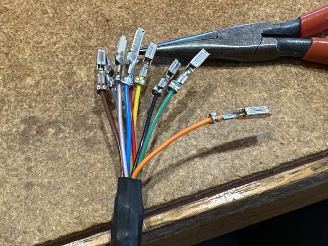 I used 173630-1 terminals because the PTFE/Teflon jacketed hookup wire I like (Belden 83004) is 24 AWG. I used a delphi 12085271 crimping tool.