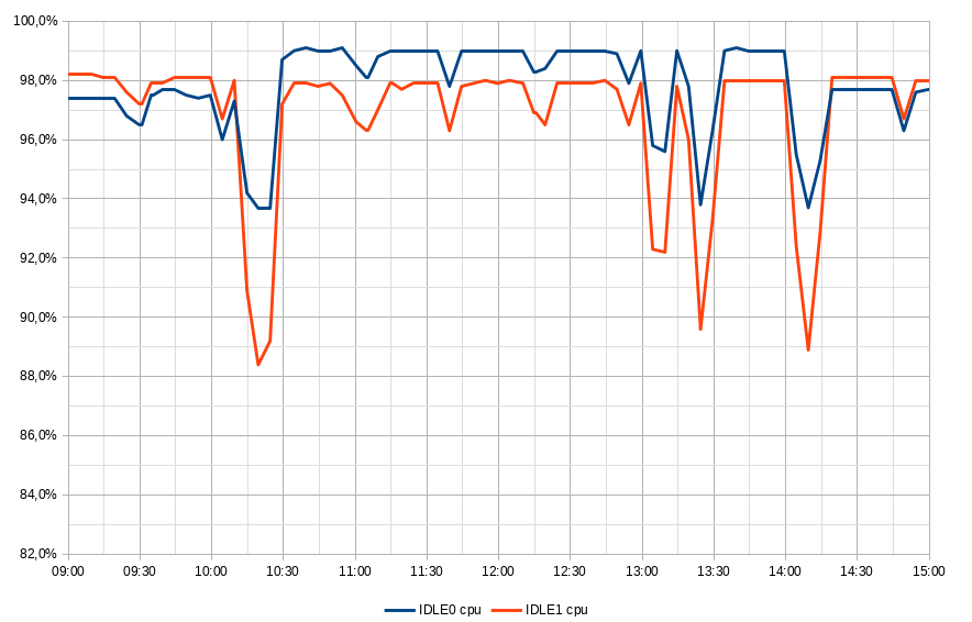 So that's nowhere near "too much" in terms of CPU load -- normally. I'm waiting to catch the issue situation with this instrumentation.