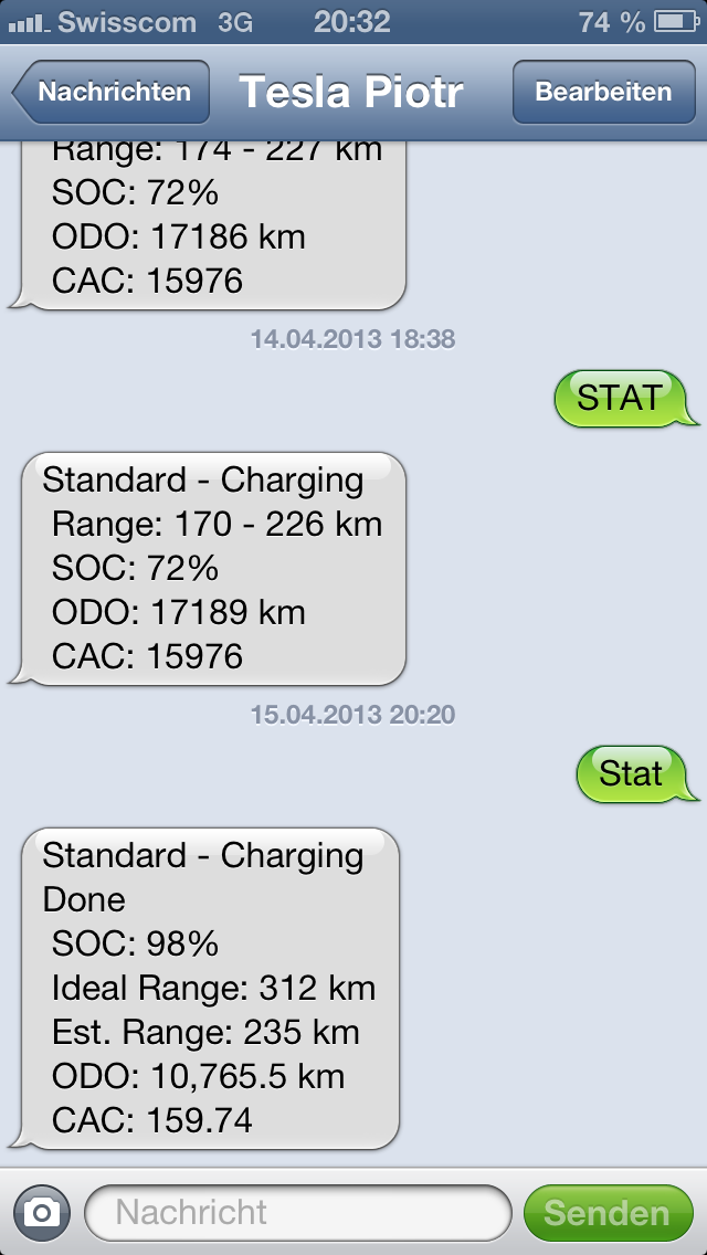 I've seen some odd behaviour with SOC… if you see the attached photo's you'll see STAT report SOC as 46% and then 50% even though the commands were sent within a minute of one another (approximately). You'll also see the app and car displayed 52% and 92m at the same time.
