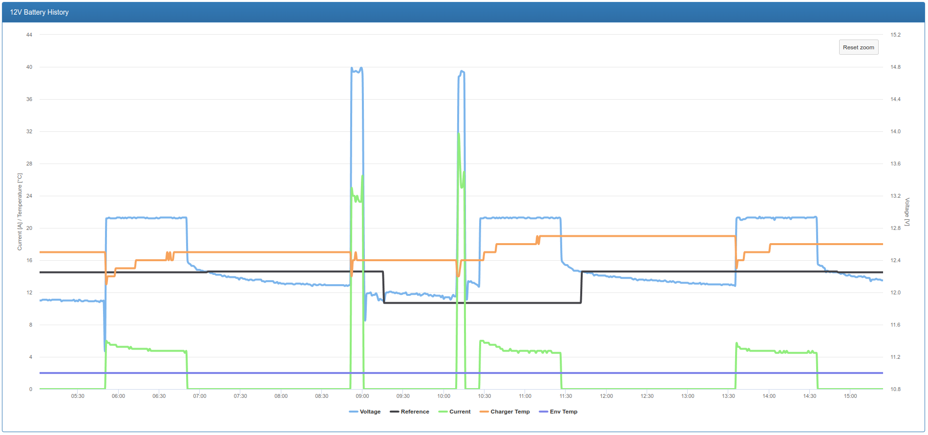 Tamás, the reference voltage is meant to follow battery degradation and environmental thermal conditions, it's currently taken after a 12V charge cycle, with some calmdown time taken into account. To do that, it relies on the `ms_v_env_charging12v` signal. If that is broken, it won't work properly -- and your chart seems to show that: the reference has been taken while the 12V charge was still running. Looking at the 12V chart for my Mii, there apparently is room for improvements regarding very short driving periods, but on regular 12V charge cycles it works as designed: So I suggest taking a look at improving the `ms_v_env_charging12v` detection on your car. Regards, Michael Am 22.12.24 um 10:45 schrieb Tamás Kovács via OvmsDev: