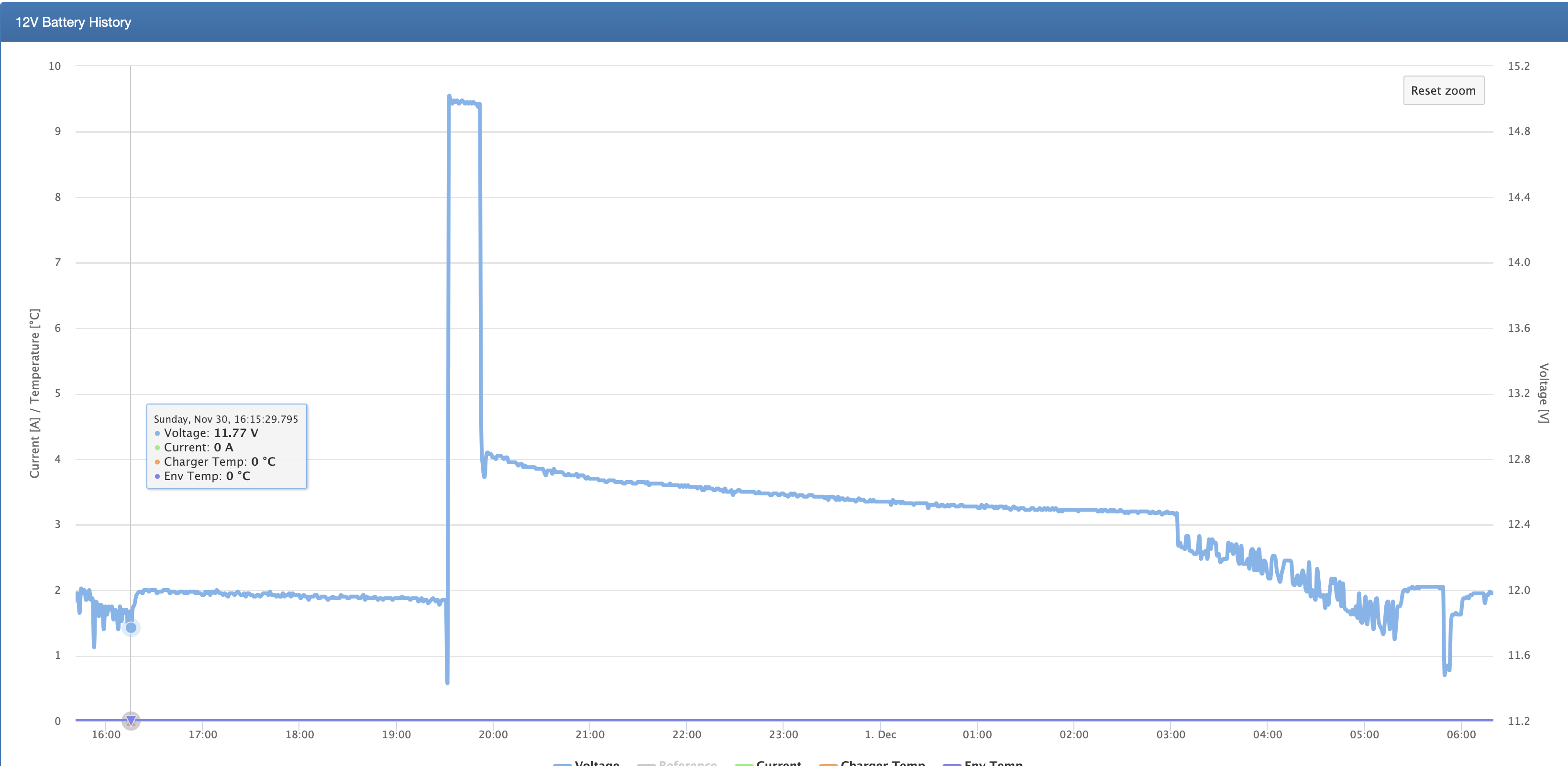 Hi guys! I have a problem with my ioniq 28kwh car, use ovms over 2 years, and now drain my battery last day i found the following, if i set the vehicle module to none, the drain is stop. i use the edge fw. In night the auto update fw is run and after the reboot the battery drain is continue. In the picture can see, 15:15 set vehucle module to none, auto update is run at ~3:02 (vehicle module to hyundaivfl) and i woke up at ~5:20 and set the vehicle module to none I attach a log and a screenshot of battery voltage What can is do? Problem with a OBD cable? I detached the ovms from the car for a couple off hours but when is reconnect it not connect to the wi-fi network, but when i connect a computer or a powerbank, the wi-fi connection is established, after usb disconnect network works fine, but i have many can errors. On charging i get many ovms messages, charge stopped, started....... -- Thanks: Kovács Tamás