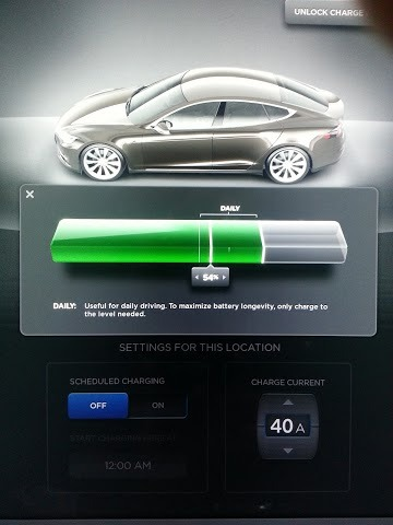 Not yet. Do you have a link? I have driven a model S, and seen some charge screenshots. It seemed even more basic than the roadster. Lots of complaints that even time delayed charging is missing, for TOU users. I have seen that the latest firmware has charge% rather than standard/range mode. I like the concept, and what I'm suggesting is something similar. But, the real requirement for charge limit % comes from commuters with limit range requirements that want to keep their batteries in the Goldilocks zone. Similar for cool down. I always thought it necessary for TOU users, but it is also useful for users in hot climates to cool down the battery even if they don't want/need to charge. I've tried to take the feedback from OVMS users, to come up with these requirements. I think I've got everyone's input covered, but please let me know if you can see anything missing. Regards, Mark On 1 Jun, 2013, at 5:55 PM, Michael Jochum <mikeljo@mac.com> wrote: