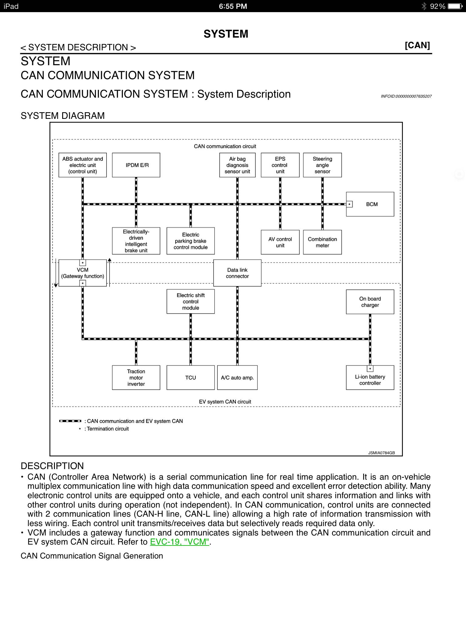 Hi All, According to the service manual, the current Telematics is located on the EV bus. My can to USB arrives Tuesday, hope to be listening to the TCU can messages soon. I've attached a page to show what's on the EV and car can busses. Jeremy On Sunday, November 3, 2013, Kevin Sharpe ZCW wrote: