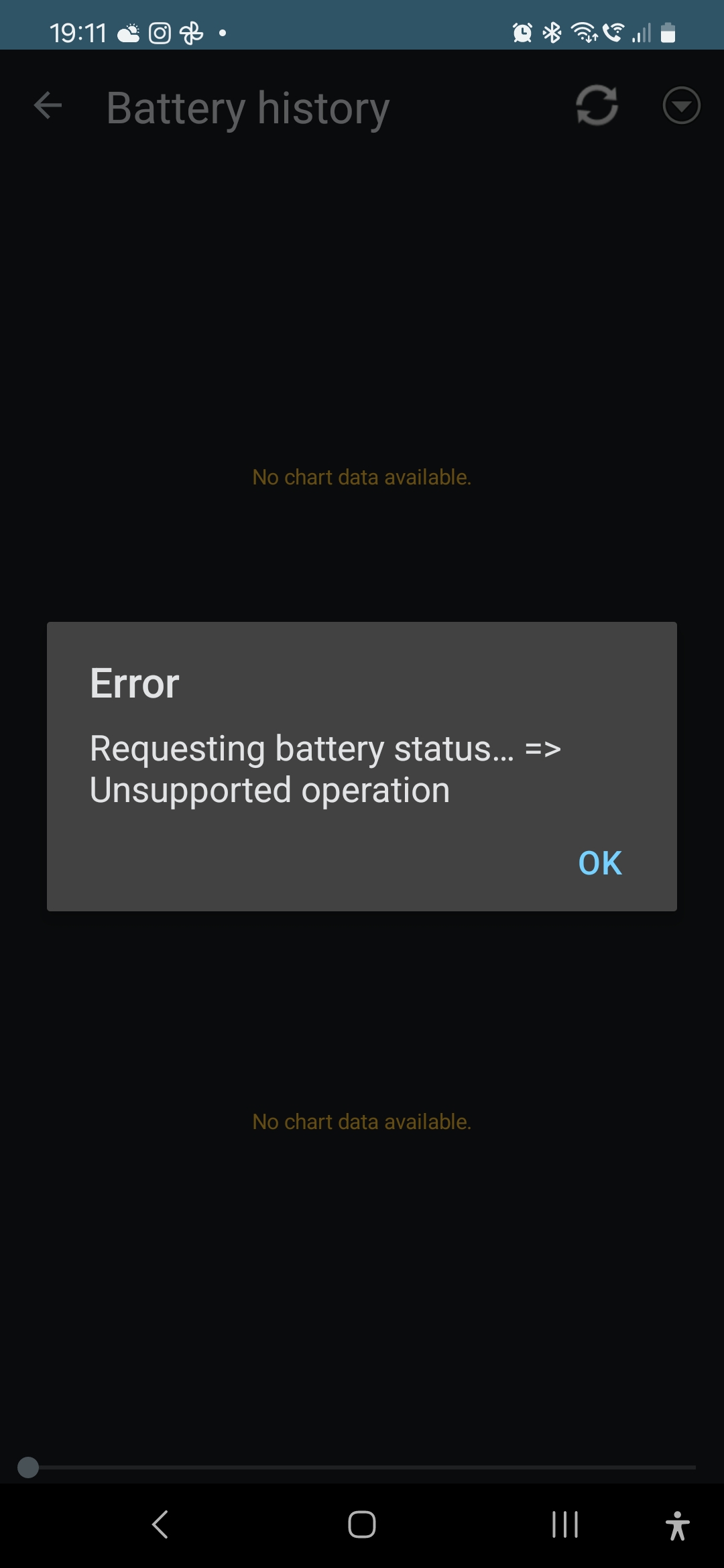 The "Battery history" chart is a Twizy specific feature, it's a battery cell state chart like the battery monitor in the web UI. It's currently bound to the wrong button though: the button "Energy statistics" should open another Twizy specific chart displaying power levels & energy usage over time. That chart doesn't seem to be available now… and currently the App immediately crashes after selecting a Twizy profile. And keeps crashing, see below. With actual data, the charts look like the example screen shots 2 & 3: https://dexters-web.de/faq#waskann Both charts could get supported generally, with some modifications. They currently need the Twizy specific historical data records (RT-BAT-P, RT-BAT-C, RT-PWR-Stats). The main issue is finding a suitable generalization for these. Twizy crash log excerpt: 2024-12-31 13:04:01.702 25409-25409 ApiWidget com.openvehicles.OVMS V onReceive: ApiEvent LoginComplete 2024-12-31 13:04:01.702 25409-25409 ApiWidget com.openvehicles.OVMS V updateAllWidgets: 1 instances 2024-12-31 13:04:01.956 25409-25409 AndroidRuntime com.openvehicles.OVMS D Shutting down VM 2024-12-31 13:04:01.957 25409-25409 AndroidRuntime com.openvehicles.OVMS E FATAL EXCEPTION: main Process: com.openvehicles.OVMS, PID: 25409 java.util.UnknownFormatConversionException: Conversion = 'End of String' at java.util.Formatter$FormatSpecifierParser.peek(Formatter.java:2647) at java.util.Formatter$FormatSpecifierParser.<init>(Formatter.java:2608) at java.util.Formatter.parse(Formatter.java:2563) at java.util.Formatter.format(Formatter.java:2510) at java.util.Formatter.format(Formatter.java:2464) at java.lang.String.format(String.java:3603) at com.openvehicles.OVMS.ui2.pages.HomeFragment.initialiseTabs(HomeFragment.kt:1081) at com.openvehicles.OVMS.ui2.pages.HomeFragment.update(HomeFragment.kt:1143) at com.openvehicles.OVMS.api.ApiObservable.notifyOneUpdate(ApiObservable.kt:73) at com.openvehicles.OVMS.api.ApiObservable.access$notifyOneUpdate(ApiObservable.kt:8) at com.openvehicles.OVMS.api.ApiObservable$NotifyOneHandler.handleMessage(ApiObservable.kt:91) at android.os.Handler.dispatchMessage(Handler.java:106) at android.os.Looper.loopOnce(Looper.java:201) at android.os.Looper.loop(Looper.java:288) at android.app.ActivityThread.main(ActivityThread.java:7924) at java.lang.reflect.Method.invoke(Native Method) at com.android.internal.os.RuntimeInit$MethodAndArgsCaller.run(RuntimeInit.java:548) at com.android.internal.os.ZygoteInit.main(ZygoteInit.java:936) Regards, Michael Am 31.12.24 um 12:29 schrieb Michael Geddes via OvmsDev: